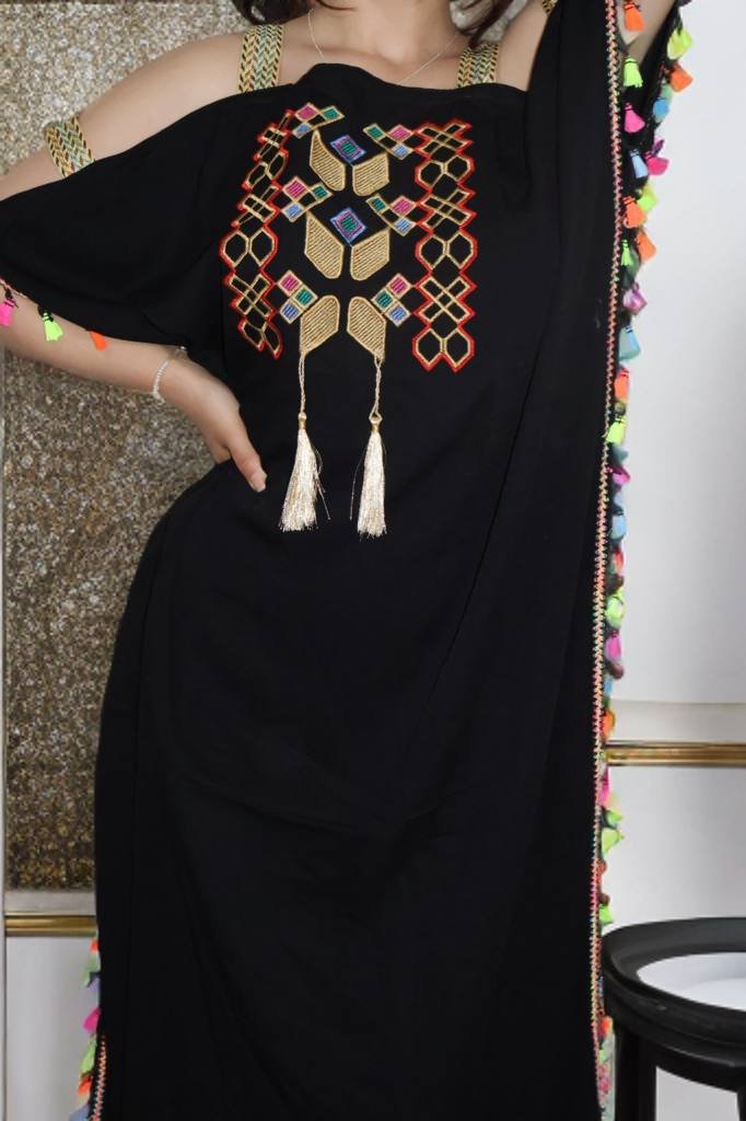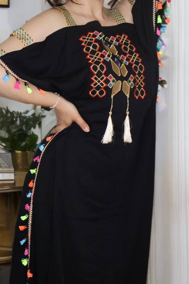 Black Moroccan Gandoura – Traditional Embroidery
