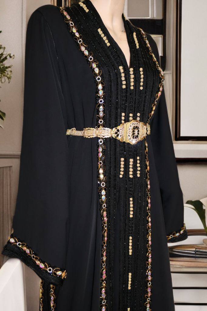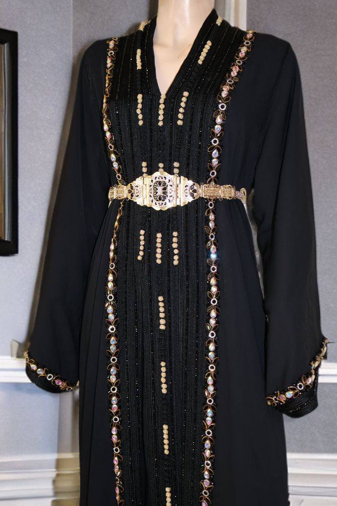 Luxury Black Moroccan Kaftan – Handmade Silver Embroidery