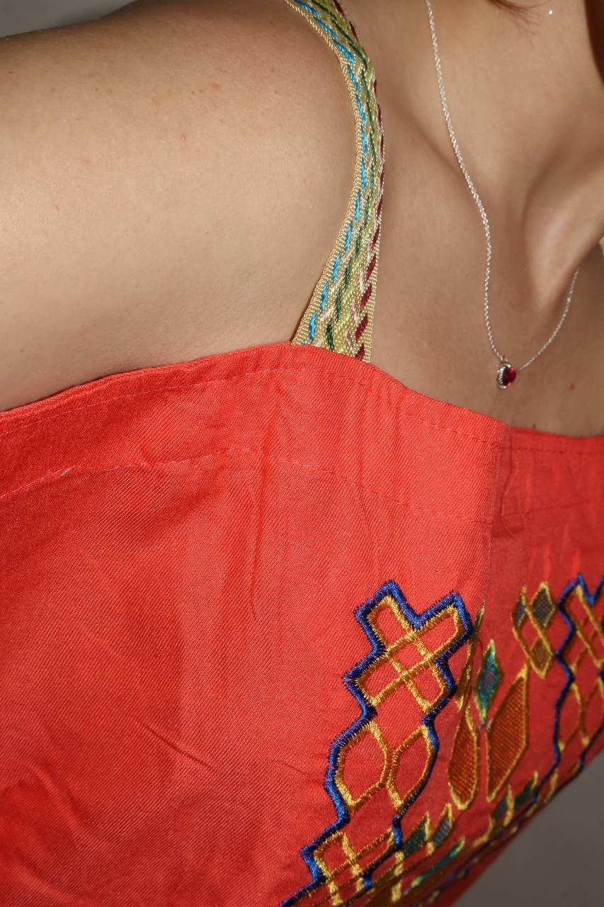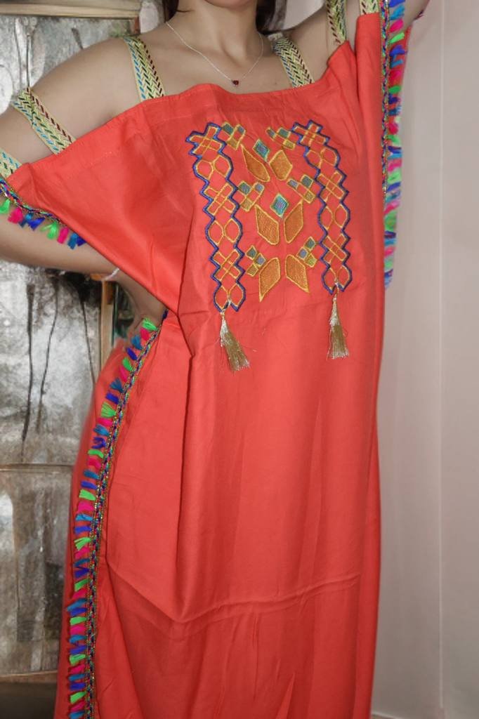 Authentic orange cotton Gandoura with hand embroidery. Perfect for UAE summer wear & casual Eid outfits.