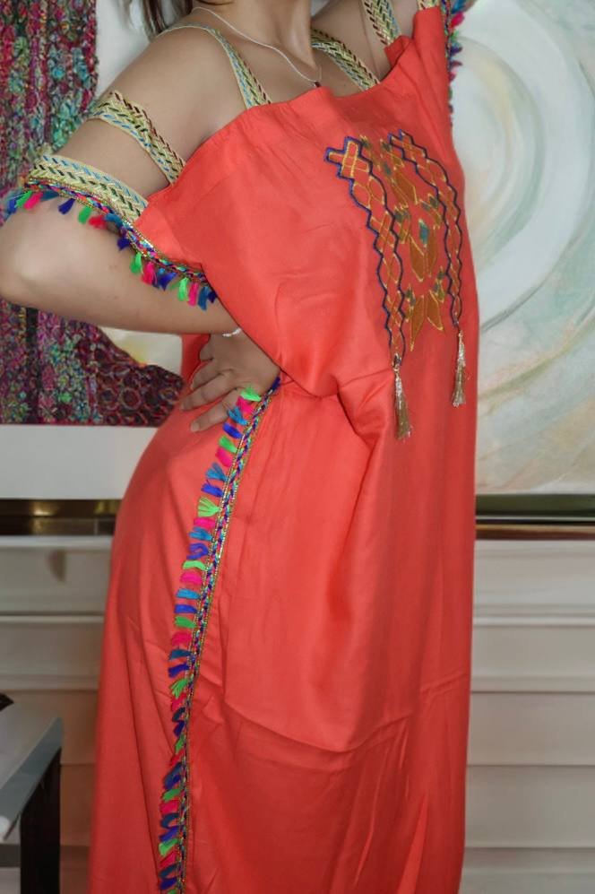 Be the first to review “Orange Moroccan Gandoura – Traditional Embroidery”